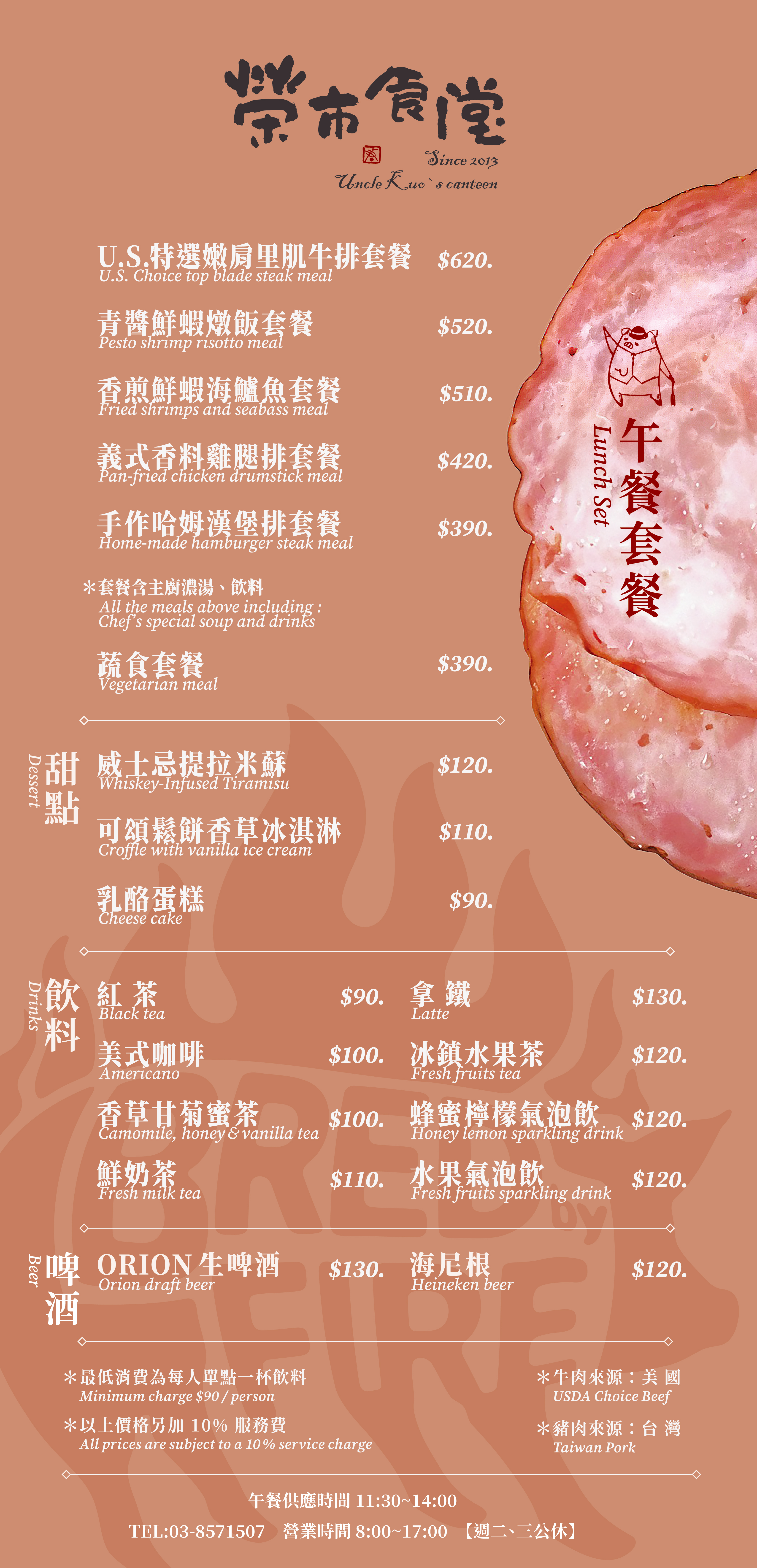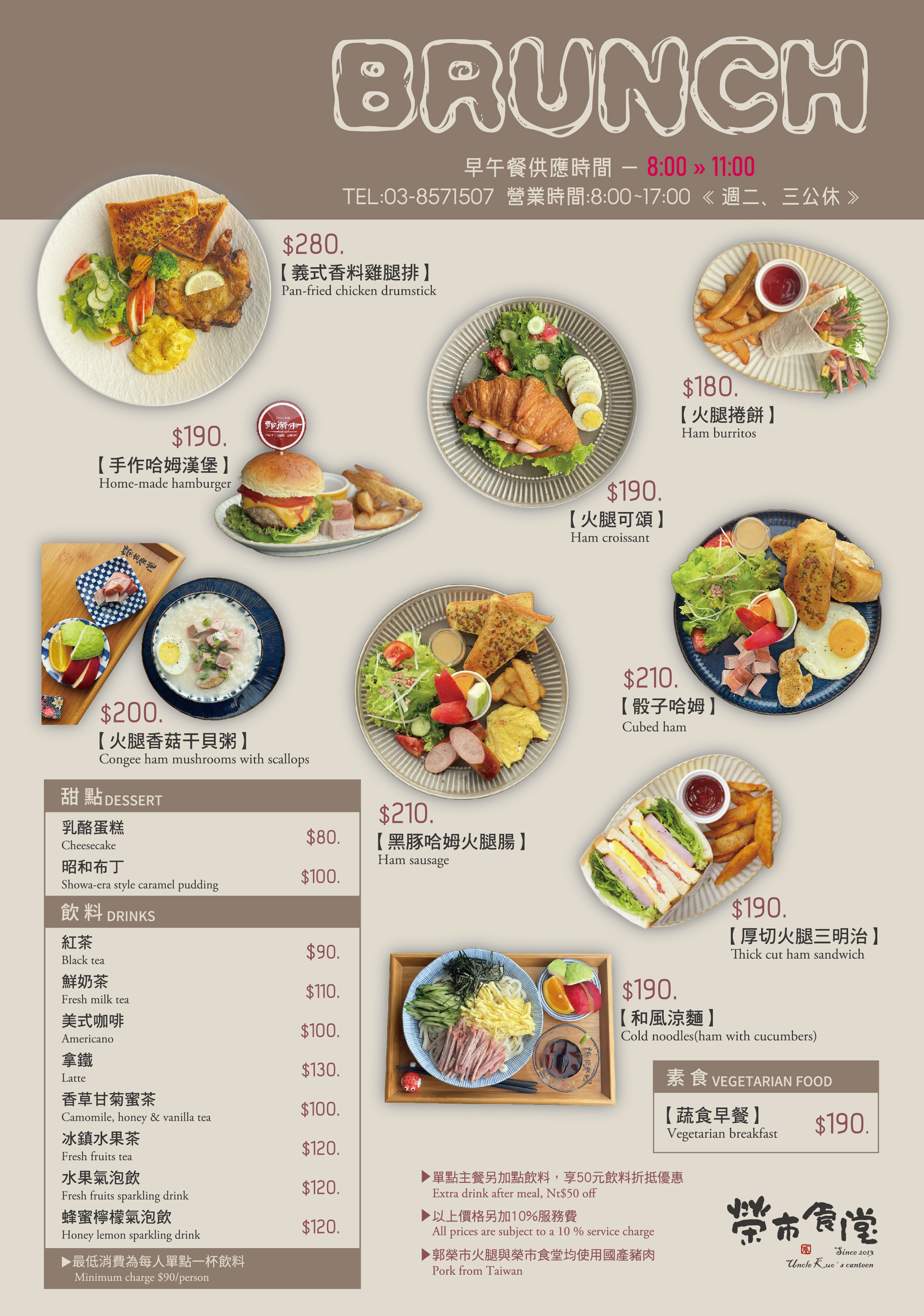 2021年【榮市食堂】在經過七個月的整修之後,以全新面貌和喜愛郭榮市火腿的朋友見面,全新的榮市食堂,不僅有經典的早午餐套餐,也新增了午餐及下午茶的時段,食堂選用了「郭榮市手工火腿」和新鮮在地食材,以替家人準備早餐的心情,用心呈現每道餐點,讓您享受美味也可以很自在。