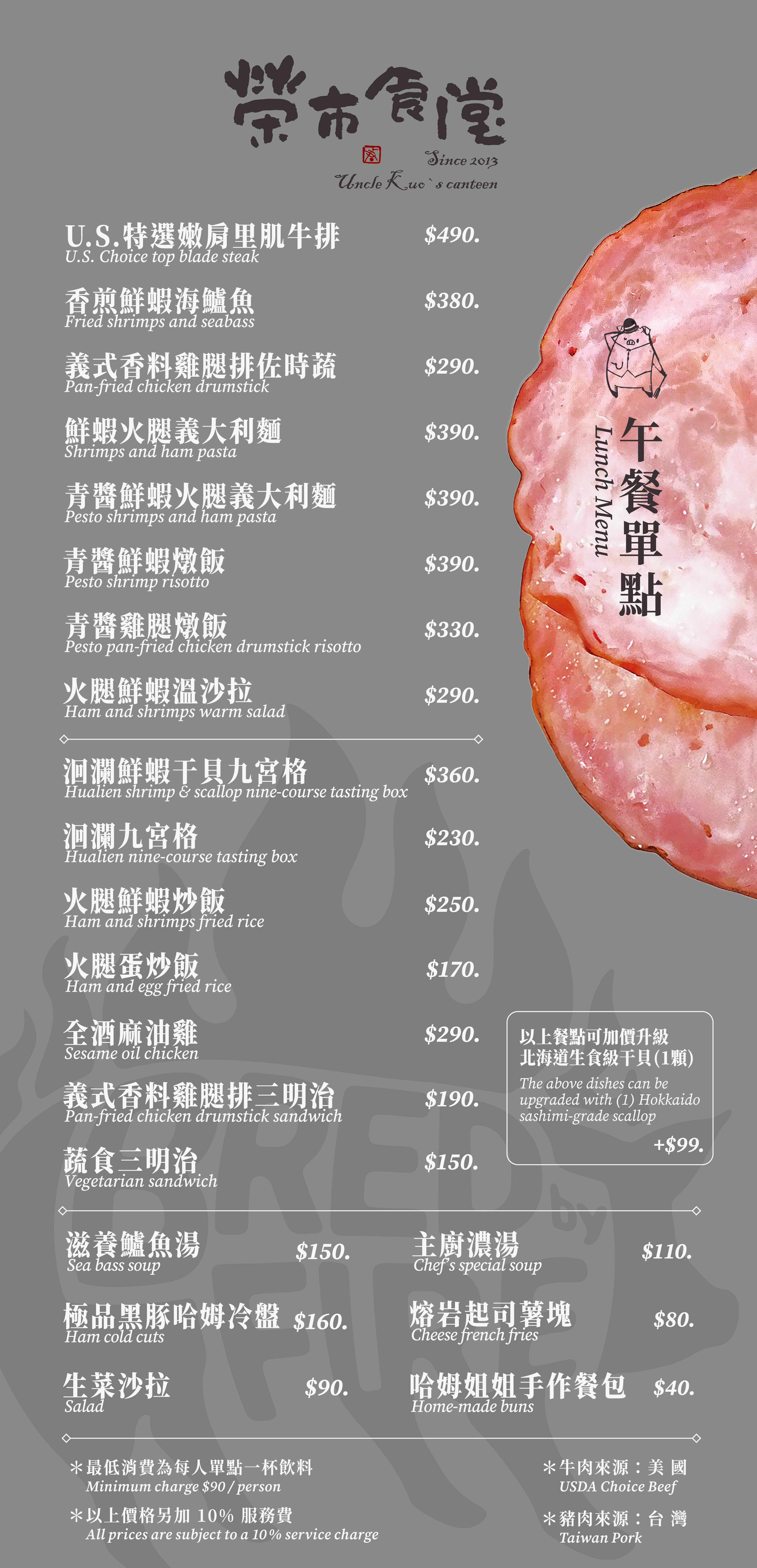 【榮市食堂】於2013開啟了郭榮市火腿餐食的序幕,原本是一間僅有十席座位的小食堂。